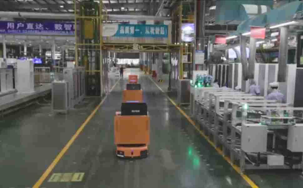 为车载冰箱物流配送打造的智能解决方案,,包含产中物流通过潜伏举升AMR搬运至线边,,,产后成品物流智能仓储,,流程包含产中物流智能齐套入库,,,线边安灯叫料AMR智能配送至线边,,,成品入库、、、、出库,,,,通过无人堆高车机器人,,,,智能仓储管理替代人工作业管理,,实现更高存储、、、更高效率、、、、更具柔性化的解决方案。。